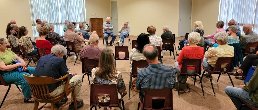 On April 27, Shiloh Museum staff hosted a gathering of Ozark Society members and friends from the Highlands Chapter and the Sugar Creek Chapter. Some fifty people attended to watch a 10-minute interview excerpt of Ken, followed by “live” questions from the audience and lively responses from Ken.